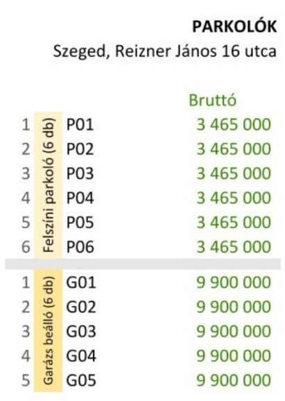 Parkolók és Garázsok opciónálisan vásárolhatók a lakásokhoz. A parkolókat a lakásokhoz rendeljük kizárólagos használati joggal. A garázsok önnálló albetéttel kerülnek értékesítésre.